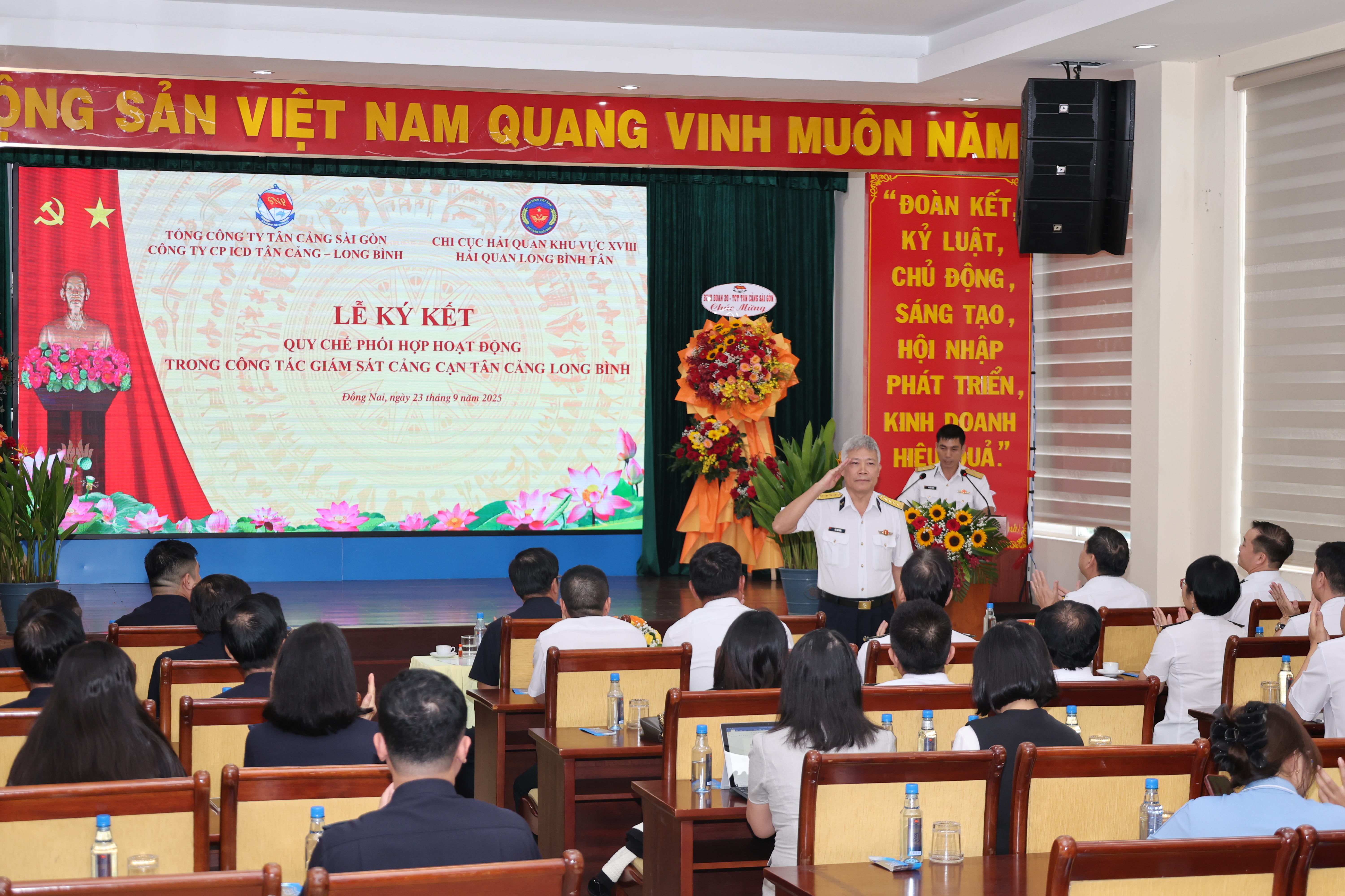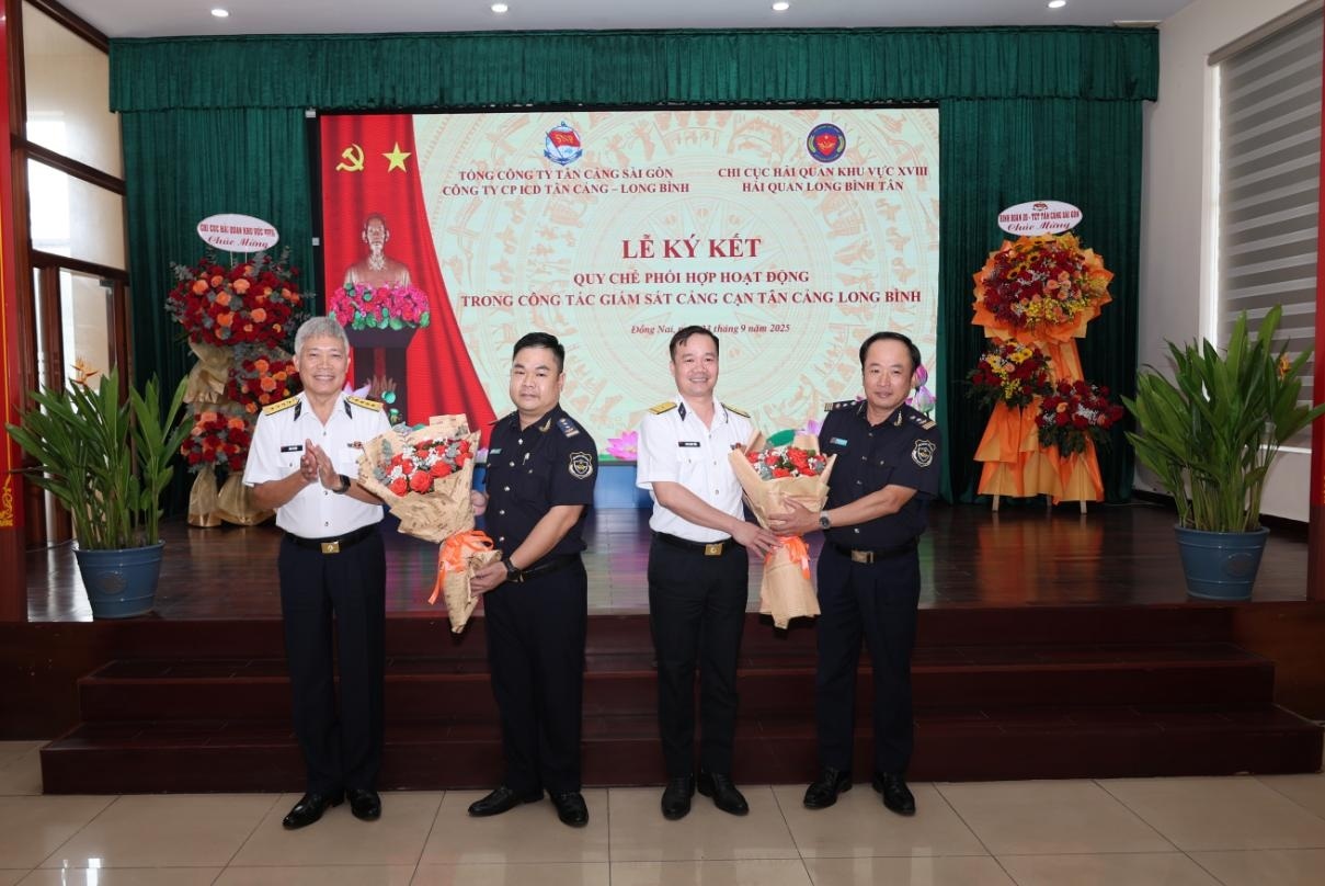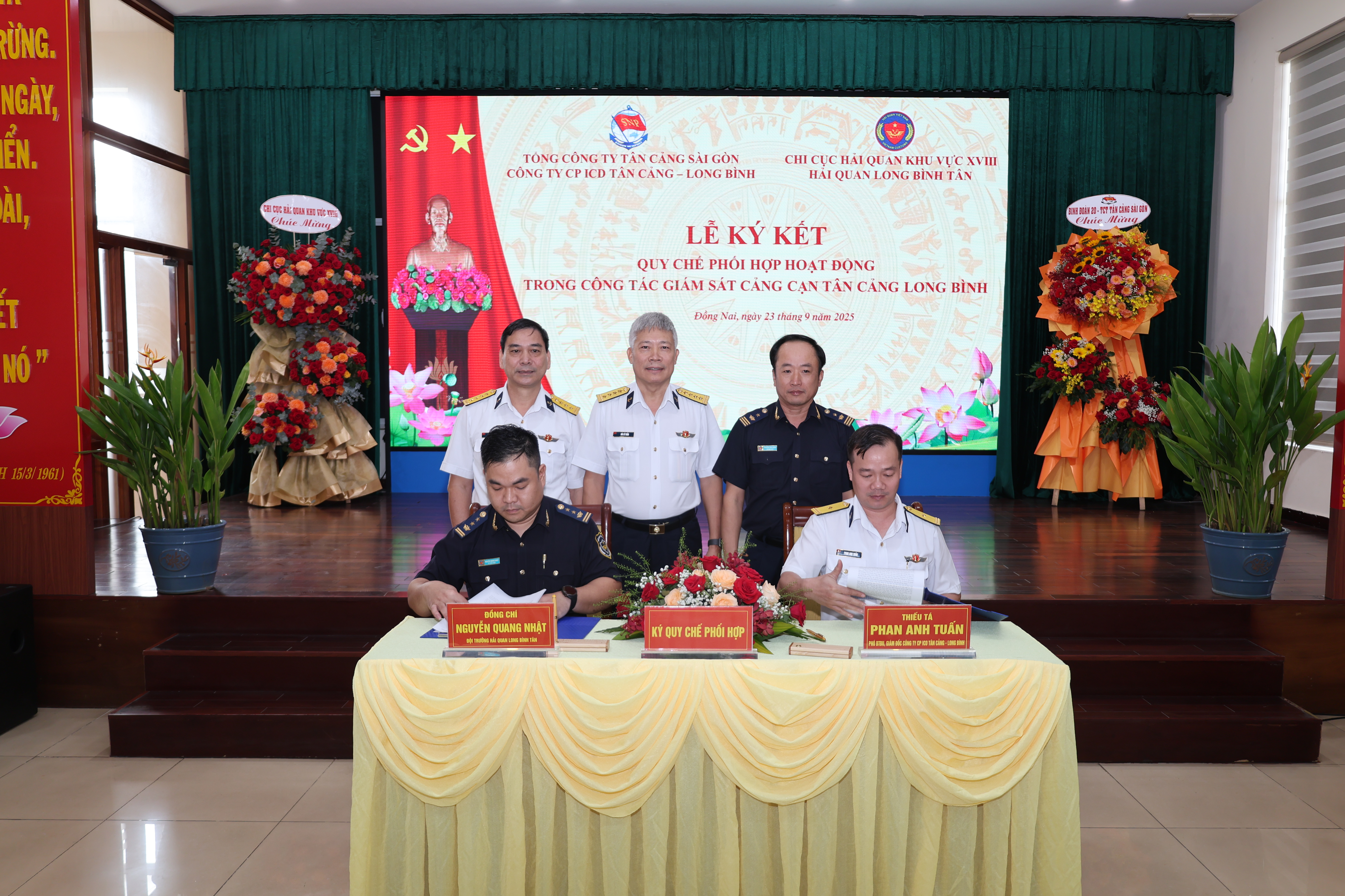 Ngày 23/9, Hải quan Long Bình Tân – Chi cục Hải quan XVIII và Công ty CP ICD Tân Cảng - Long Bình đã tổ chức Lễ ký kết quy chế phối hợp hoạt động trong công tác giám sát cảng cạn Tân Cảng Long Bình Tân (ICD Tân Cảng- Long Bình).